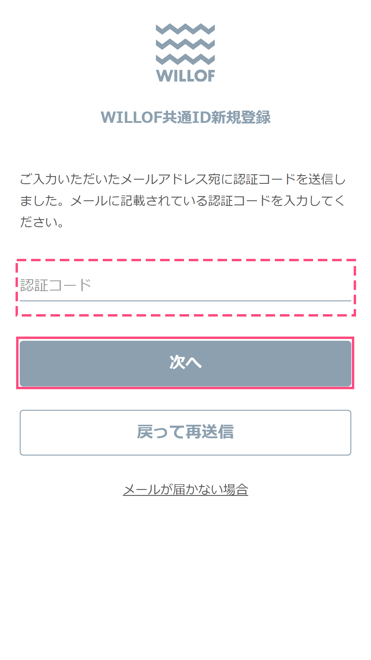 5. WILLOF共通ID情報を入力し「登録」を選択